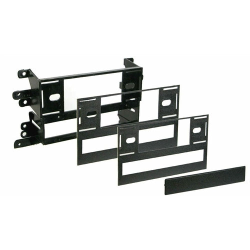 Single DIN Black Stereo Dash Kit (99-7408) by Metra®, with Equalizer Option, DIN to 2-Shaft Conversion.