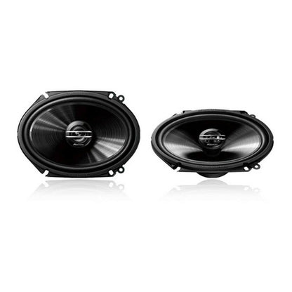 Installation and Sound to Suit Any Car Our TS-G6820S speakers are excellent choices to replace a bad set of factory 6" x 8" speakers. Their two-way design handles 250 watts max. power (40 watts nominal) and features Pioneer’s extremely strong and lightweight Injected Molded Polypropylene™ (IMPP) with MICA composite cone woofer for improved sensitivity and reduced distortion. You don't get just basic, run-of-the-mill features either. The conex damper delivers higher power handling and deeper bass, and the 1-3/16" Balanced dome tweeter reproduces highs with great performance and musicality. These speakers are designed with a shallow mounting depth for easy installation and custom-fit baskets for select Ford and Mazda vehicles. Bluetooth P.F.S.S. Spider Progressive Flex Suspension System supports the voice coil effectively by dampening the large cone vibration and enhancing linearity of sound reproduction. Its soft part makes movement smooth and reproduces clear sound and at excessive input, its hard part controls excessive vibration and prevents movement error. Pioneer Ts-g6820s G-series 6" X 8" 250-watt 2-way Coaxial Speakers