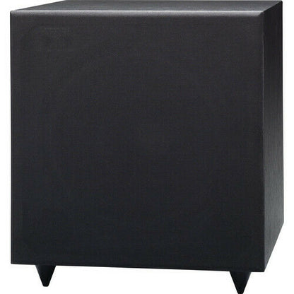 This subwoofer utilizes a front-firing woofer design that complements front surround systems and micro component systems.